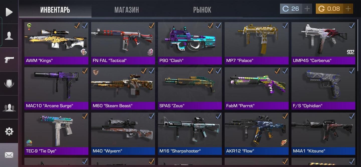 - скины для оружия,