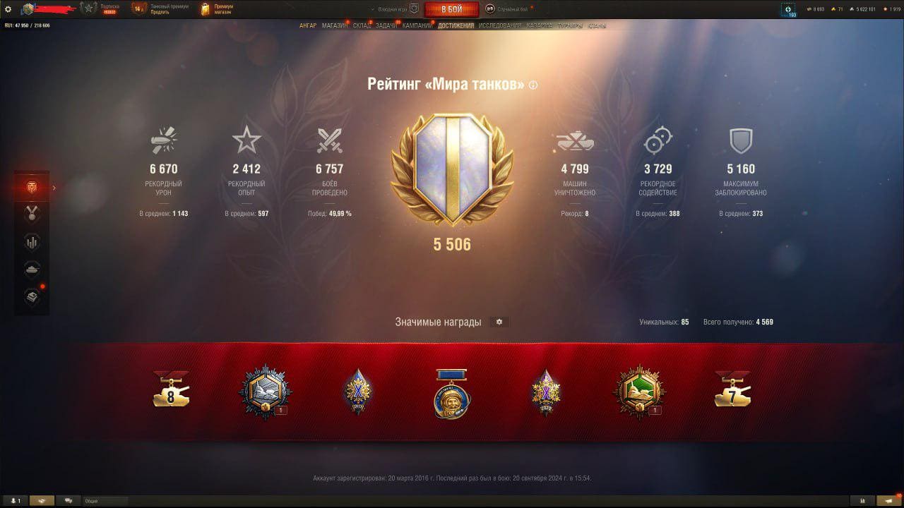 🏆Процент побед: 50% 🎌Число боёв: 27 945 💰Серебро: 5 220 256